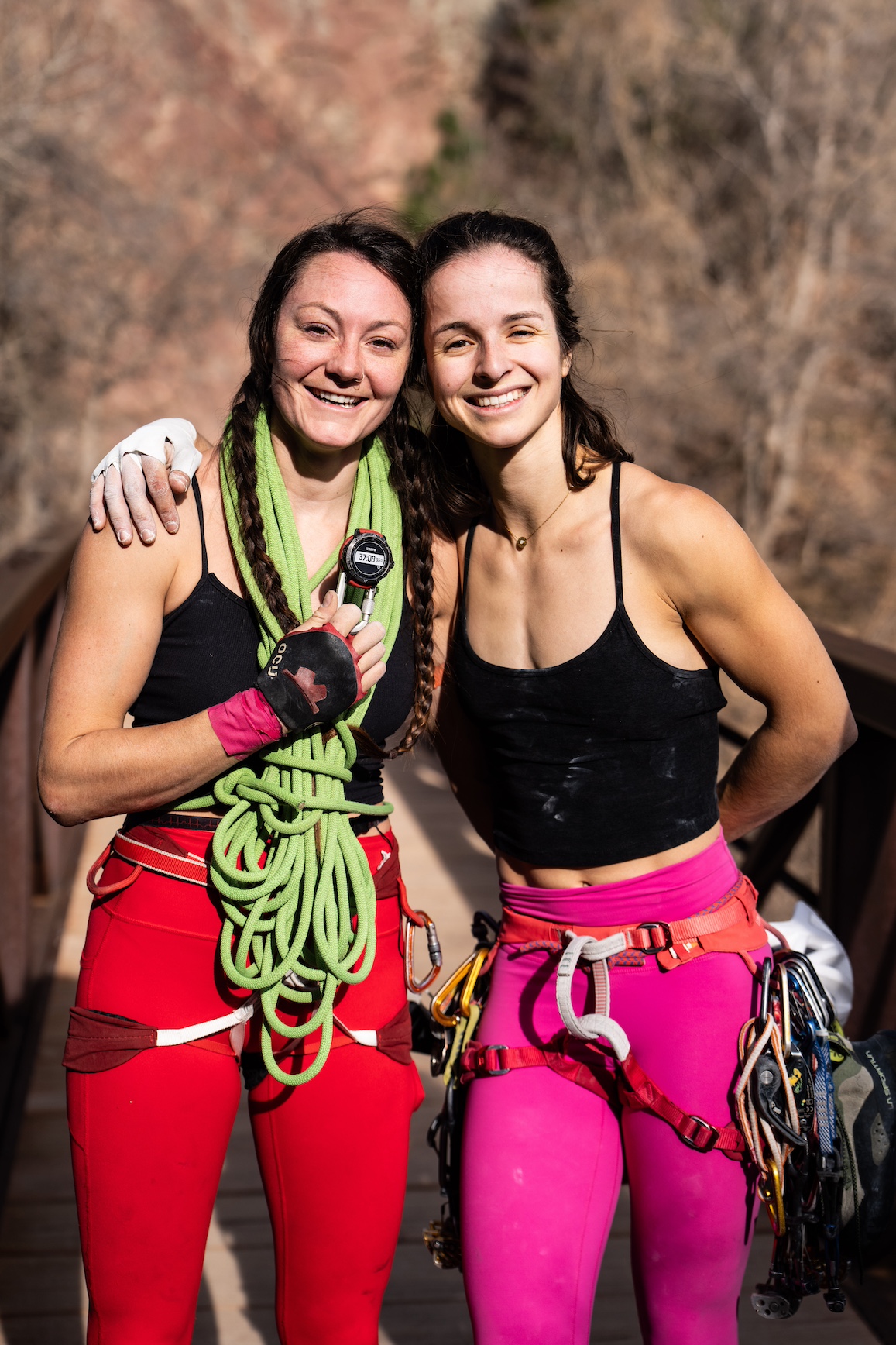 Kate: I think I was always the one who was a little obsessive about speed climbing. I think Laura, she's someone who chases really big goals. So this was a super challenging and very big goal. And yeah, she was totally up for the challenge. And yeah, she's a quick learner. Obviously, she's a crusher and bringing her, she came to Colorado before Yosemite and we did, we basically mini tested on the Naked Edge. So I taught her all the speed tactics and then we just started going for it. So within like, I think it was her 9th lap that we re-broke the female speed record on the Edge, which is crazy.