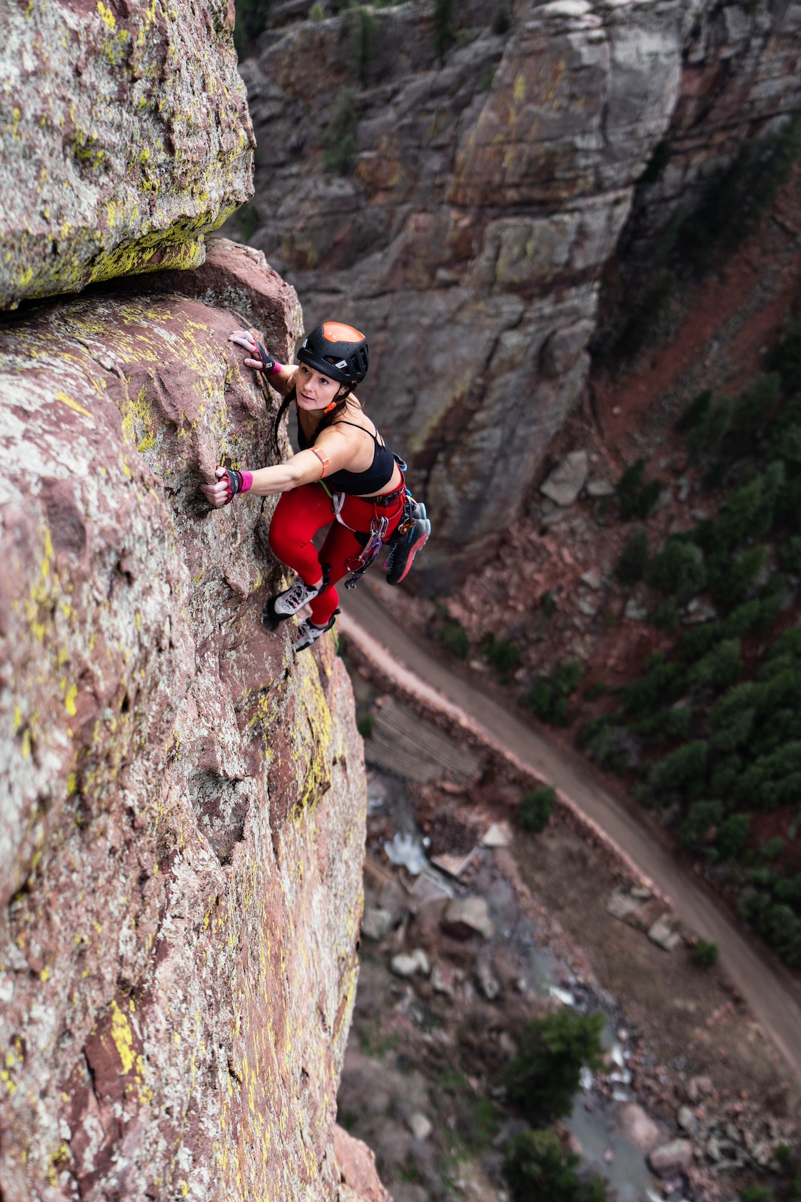 Kate: Yeah, I guess a little bit of both. I definitely found a couple partners like Becca Droz, who I set the first record on the Naked Edge with for women, has been a life-changing partner for me. She's so rad. She's so strong. And also just so goofy as well. And we were in each other's circles for a little bit. And our friends were like, you guys have to climb together. It's just going to be such an awesome partnership. And we're like, yeah, yeah, yeah. And then finally, we ended up making plans to climb together. And the first thing we climbed together was Spare Me the Details on Spearhead in Rocky Mountain National Park, which is like an 11d with like some 10+ R climbing. And it's funny because Becca doesn't like to wake up early and, and I don't like to bivy. So she was like, well, I'm going to bivy up there. And I was like, well, I'm not, I'm going to sleep in my bed. And she's like, okay, just meet me at the Black Lake at like 7 a.m. I was like, okay. So the first time I ever actually went climbing with her, I was hiking into Rocky Mountain National Park at like 5 a.m. I showed up early because I was nervous I was going to be slow or something and didn't want to be late. And then I remember just like getting to Black Lake and I see these socks, like rainbow striped socks sticking out from behind a tree. I was like, that's got to be her. And I had showed up a little early, so she was all mad because she didn't get to sleep the extra half hour. But we ended up having this epic day of climbing, and she's a lot stronger than me. And so she took the crux pitch, which I was like, that's terrifying. But then the 10+R, I was like, this is great. She was like, that's terrifying. So we had this perfect partnership where like my head game was pretty good and her strength is really good. So we were just like, I take the really run out pitches and she would take the technical, hard pitches. And yeah, it was like a really awesome way to start the partnership.
